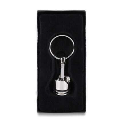 Brelok Metalowy Piston w kolorze srebrnym to elegancja i funkcjonalność w jednym.