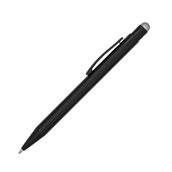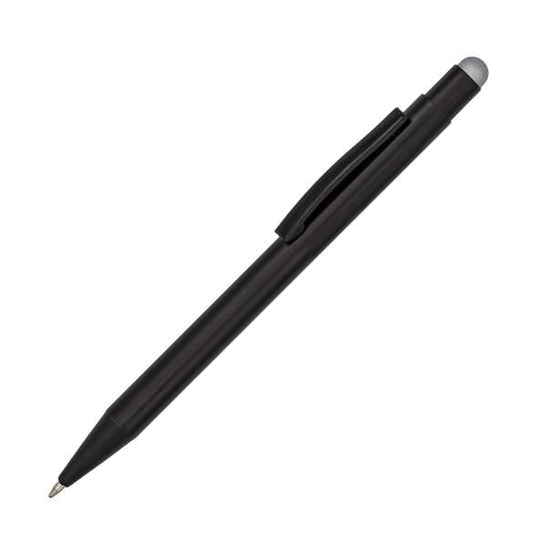 Elegancki, aluminiowy długopis z niebieskim wkładem, wyposażony w końcówkę do ekranów dotykowych. Umożliwia wykonanie grawerunku w kolorze dopasowanym do końcówki.