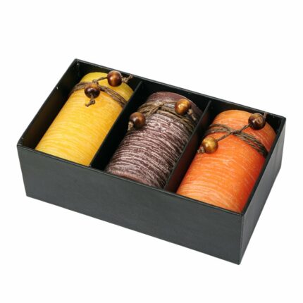 Wyjątkowy zestaw świec zapachowych w kolorze brązowym i żółtym to elegancja i relaks w jednym.