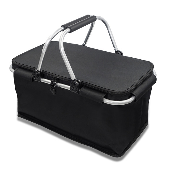 Wykonany z poliestru izotermiczny kosz piknikowy o pojemności 32 litrów. Zapewnia bardzo dobrą izolację termiczną dzięki starannemu wyłożeniu wnętrza grubą warstwą izotermiczną z folii aluminiowej oraz pianki EPE. Aluminiowa rama, uchwyt z pianki EVA. Maksymalne obciążenie 15 kg