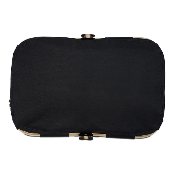Kosz termiczny na zakupy Woody czarny R08151.02 — praktyczny kosz termoizolacyjny z pokrywą na zamek oraz drewnianym uchwytem, o pojemności 28 l i maksymalnym obciążeniu 9 kg. Wymiary 420 × 240 × 270 mm, wykonany z poliestru 600 D ze sklejką brzozową, łatwy do złożenia i przechowywania. Kolor czarny i solidna konstrukcja.