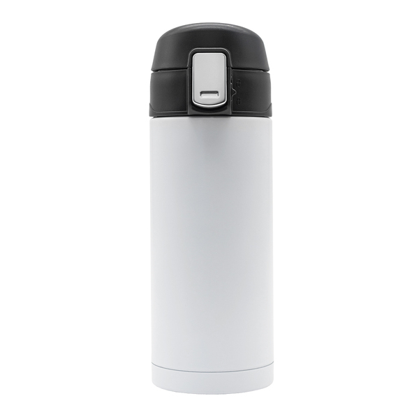 Kubek termiczny Bergen R08479.06 to biały kubek izolowany o pojemności 340 ml z podwójnymi ściankami ze stali nierdzewnej i szczelną pokrywką.