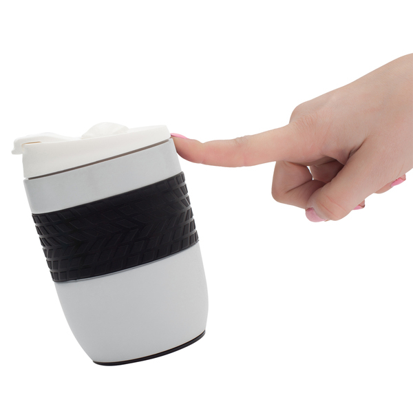 Szczelny kubek izotermiczny z ergonomiczną opaską ułatwiającą trzymanie kubka. Przyssawka umieszczona na spodzie zapobiega przypadkowemu przewróceniu się kubka. Oderwanie od podłoża przez podniesienie kubka pod kątem prostym do góry. Dwie ścianki ze stali nierdzewnej, wewnątrz stal 18/8 o podwyższonej jakości. Utrzymuje temperaturę powyżej 40°C przez 2 godziny. Posiada zamknięcie typu flip up sip i leak proof – zapobiegające wyciekaniu płynów. Pojemność 200 ml.