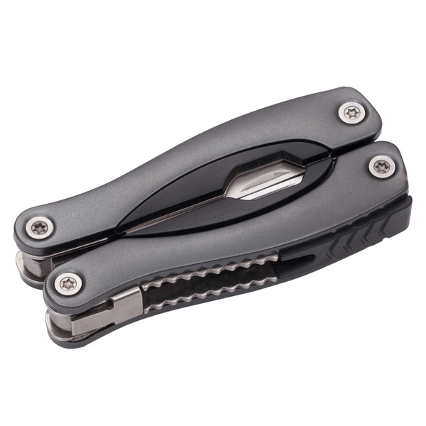 Narzędzie 9-funkcyjne pakowane w poliestrowe etui. Ostrza wykonane ze stali nierdzewnej. Narzędzie zawiera: piłę, wkrętaki płaskie, otwieracz do konserw, pilnik, szczypce uniwersalne, skrobak do ryb z końcówką do haczyków wędkarskich, otwieracz do butelek, wkrętak PH krzyżakowy, nóż.