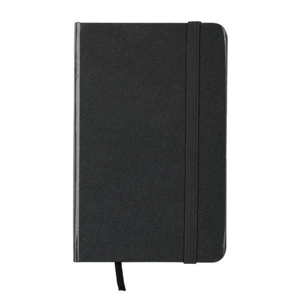 Notatnik w twardej oprawie z elastyczną gumką chroniącą wnętrze. Papier kremowy chamois w kratkę o gramaturze 70 g/m2 o wymiarze 9 x 14 cm, 80 kartek, tasiemka do zaznaczania ostatniej zapisanej strony. Rozmiar kieszonkowy.
