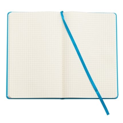 Notatnik w twardej oprawie z elastyczną gumką chroniącą wnętrze. Papier kremowy chamois w kratkę o gramaturze 70 g/m2 o wymiarze 13 x 21 cm, 80 kartek, tasiemka do zaznaczanie ostatniej zapisanej strony. Rozmiar biurkowy.