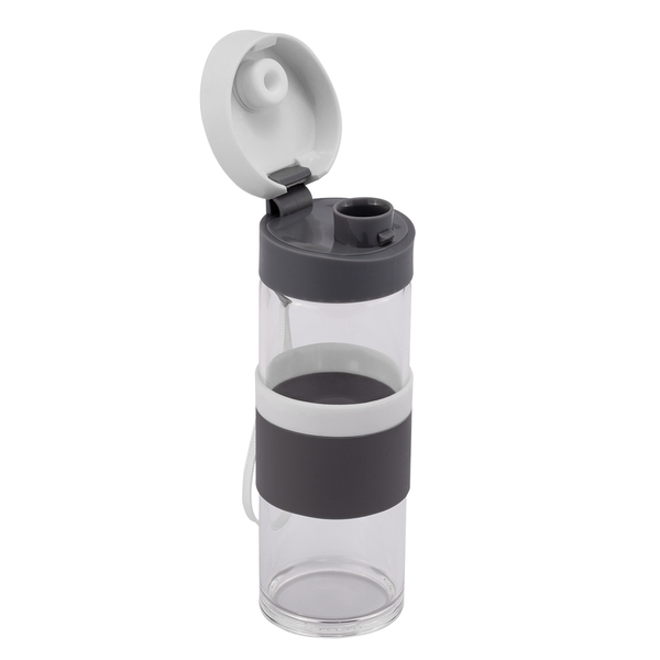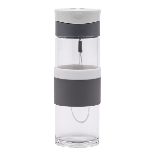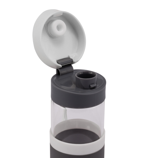 Szczelna butelka o pojemności 440 ml. Wykonany ze szkła borokrzemowego, które jest nadzwyczaj przyjazne naszemu zdrowiu, a także lżejsze od tradycyjnego szkła. Butelka wyposażona jest w uchwyt na nadgarstek, opaskę do trzymania oraz szczelne zamknięcie typu leak proof zapobiegające wyciekaniu płynów. Nie zawiera BPA.