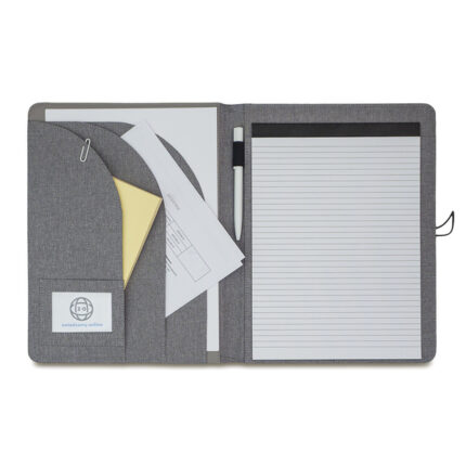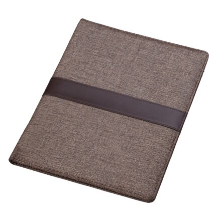 Teczka konferencyjna A4 w lnianej okładce. W środku notes w linię z papieru z recyklingu, 20 kartek 70 g/m². Kieszeń na dokumenty A4 i dwie dodatkowe kieszenie, uchwyt na długopis. Długopis nie jest dołączony.