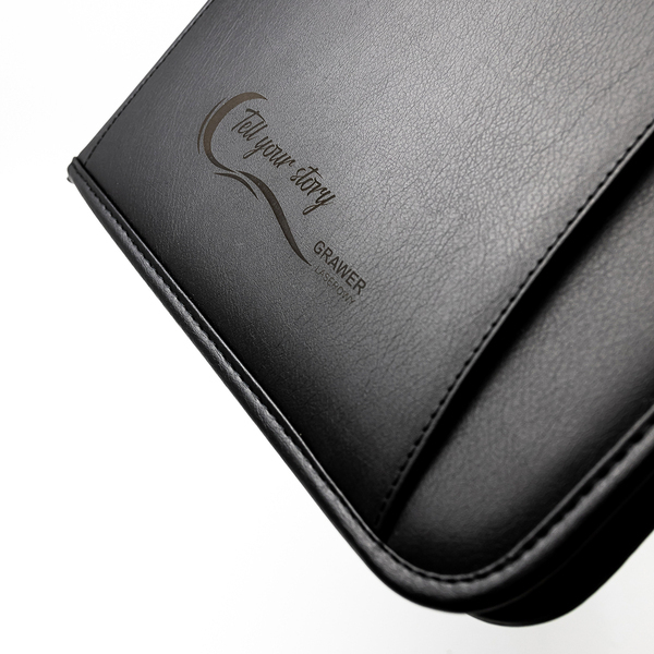 Znaczników: akcesoria biurowe, biurowy organizer, biznesowa teczka, czarny organizer, elegancki prezent, grawer, nadruk, profesjonalne wyposażenie, R91714.02, skóra ekologiczna, Teczki konferencyjne
