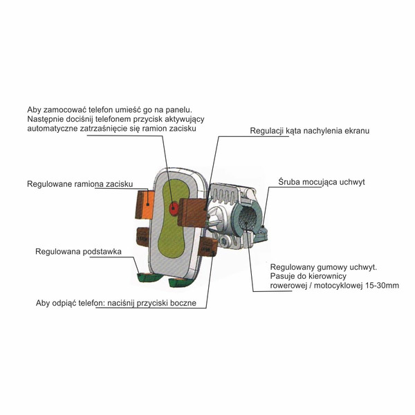 Uniwersalność: Uchwyt pasuje do większości smartfonów dostępnych na rynku, dzięki regulowanym ramionom.