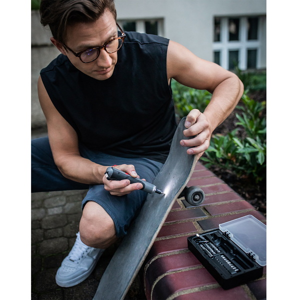 Ten wkrętak akumulatorowy to idealne narzędzie dla osób, które chcą szybko i wygodnie wykonywać prace montażowe i naprawcze bez uciążliwego ciągnięcia kabli. Dzięki akumulatorowi i kompaktowemu rozmiarowi poradzi sobie z wkręceniem lub odkręceniem większości śrub w meblach, urządzeniach czy elementach konstrukcyjnych. Czarny design podkreśla nowoczesny charakter narzędzia, a ergonomiczny uchwyt zwiększa komfort użytkowania podczas dłuższych zadań.