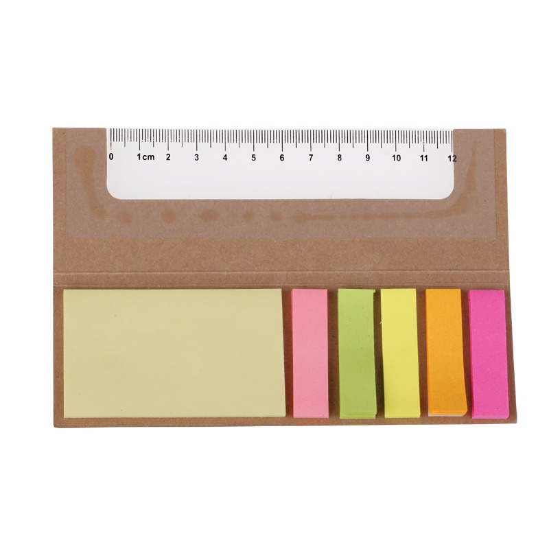 Zestaw karteczek samoprzylepnych z linijką 12 centymetrów 6 kompletów karteczek samoprzylepnych po 25 szt., gramatura 75 g/m².
