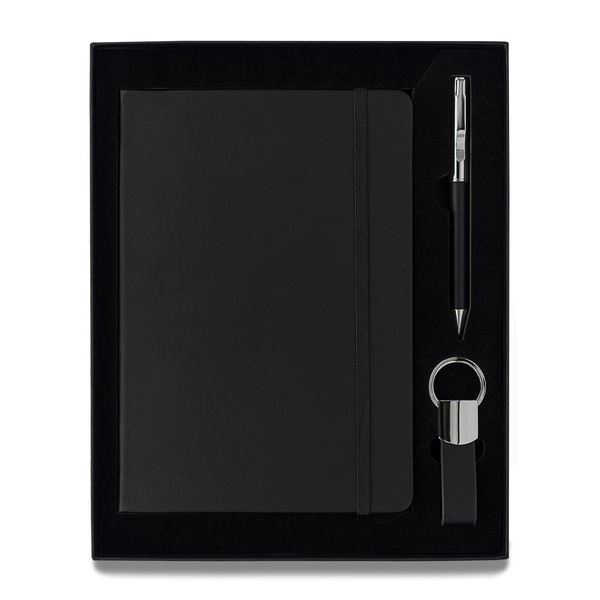 Zestaw upominkowy Nebraska, czarny (R02323.02) – elegancki komplet piśmienniczy z notesem, długopisem i brelokiem