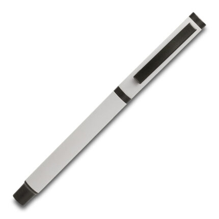 Zestaw składający się z aluminiowego długopisu i pióra kulkowego. Pióro kulkowe wyposażone jest w gumowy rysik do obsługiwania urządzeń mobilnych. Chromowane wykończenia. Długopis z 1.00 mm wkładem w kolorze niebieskim, pióro kulkowe z wkładem o grubości 0,7 mm. Zestaw pakowany jest w czarne, upominkowe etui kartonowe.