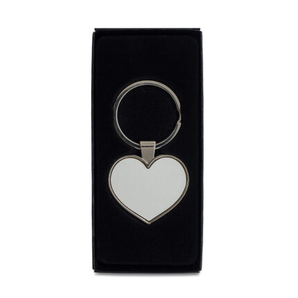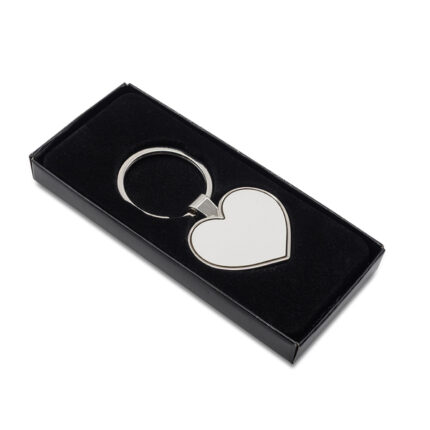 Brelok w kształcie serca. Posiada wstawkę ze skóry ekologicznej na froncie. Pakowany w czarne opakowanie upominkowe.