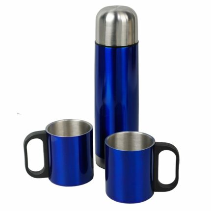Metalowy termos Picnic 480 ml + 2 kubki, niebieski/srebrny